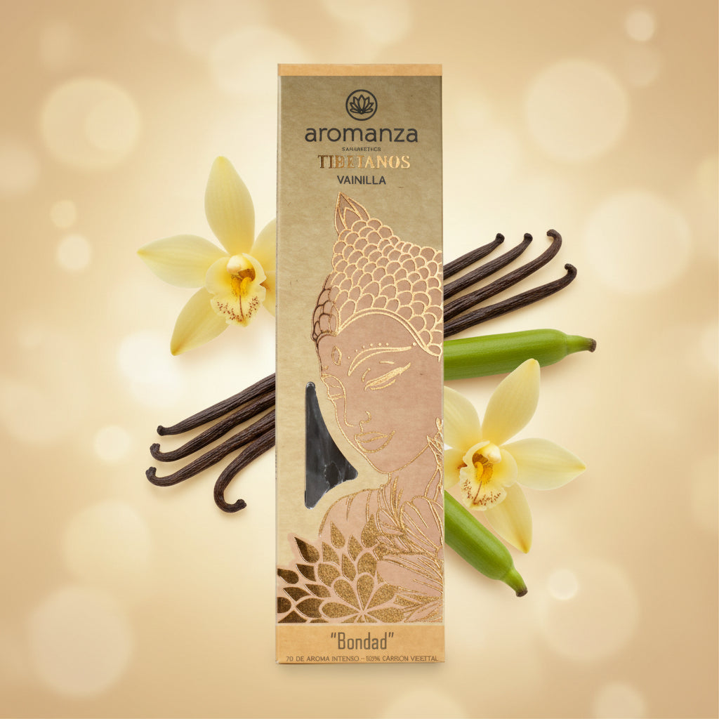 Dulce, seductor y envolvente. El sahumerio tibetano Vainillas Encantadas de Aromanza está diseñado para despertar los sentidos y llenar tu hogar de una energía cálida y encantadora. Su intención “Bondad” lo convierte en el aliado perfecto para armonizar, revitalizar y atraer vibraciones positivas.